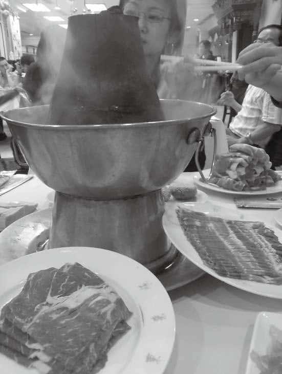 这回在北京没吃羊腩煲,但吃了一道相当不错的炒羊片。那间叫做“长安壹号”的店坐落在王府井君悦酒店地库,间隔为open kitchen形式,有多间用玻璃墙半封起来的厨房,餐桌布置在厨房旁边,食客可以边吃边看厨师做菜。那道羊片,只有香而没有腥,味道媲美肥牛,但更甘更细致,至少是我以前没尝过的。遗憾的是,室内抽气弄得不够妥善,厨房油烟外飘,吃完一顿午餐,身上发上尽是烟臭。在北京,似乎走到哪里都避不开一个“烟”字。
