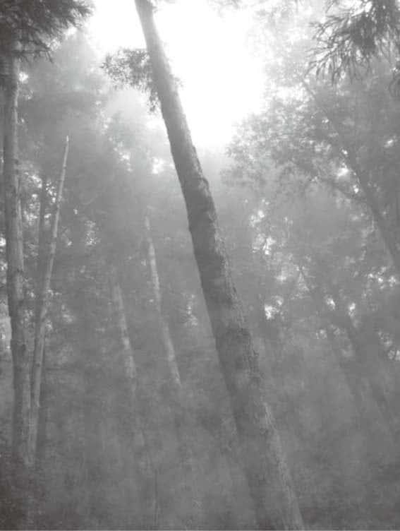 蹦蹦车今天仍然保留了鲜黄色,但木头变成了游客,每节车厢有三排座位,每排坐三个人,狭窄的车子在狭窄的铁轨上隆隆行进,右边是高高密密的山木树林,左边是山下远方的云海茫雾,人在其间,摇摇晃晃,隐隐被摇得出神。车行十分钟,到站了,乘客纷纷下车分散走向四方八面,我则建议亲人们“往上发展”,沿着车站旁的一条小山径朝上走,在一列列的参天大树之间漫步,亦如台湾人所惯说,冲洗个“森林浴”。