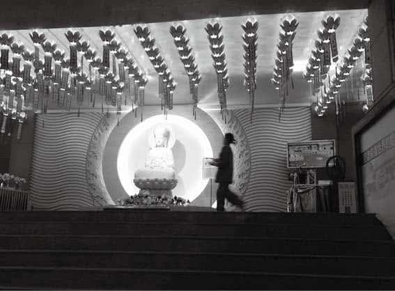 佛堂占地颇广,分为三部分,一部分供奉各界灵位,另一部分让善众诚心礼佛,再有一部分是喝茶茹素的空间,清静安宁,坐在矮椅上,瑟缩着,望向远山,热茶由喉而胃把身子暖和了,一颗心遂亦沉淀下来。刹那间脑海有点空白,仿佛可以想出许许多多平日从没想及的生活念头,却又似乎什么念头都觉得想来无谓,吃茶就吃茶,茹素就茹素,让脑袋停下来卅分钟,正是对于生活的最高崇拜礼赞。